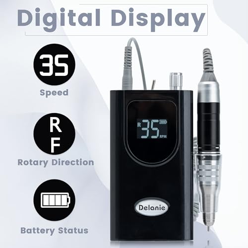 Specification: Delanie Professional Nail Drill Machine 35000 RPM, Portable Nail Drill for Acrylic Nail Gel Nail, Rechargeable Electric Nail File Efile Nail Drill, Home and Salon Use Nail Tool (Black)