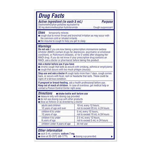 Controls cough with active ingredient dextromethorphan polistirex extended-release suspension cough suppressant