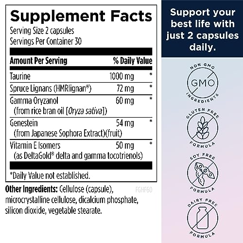 Clinically Studied Ingredients – Features clinically-studied phytoestrogens like non-soy-derived genistein and HMRlignan to help diminish you least favorite menopause symptoms: mild hot flashes caused by menopause. This unique formula delivers additional menopause supplements like gamma-oryzanol, vitamin E tocotrienols and taurine to support overall menopausal comfort and neurotransmitter balance.*