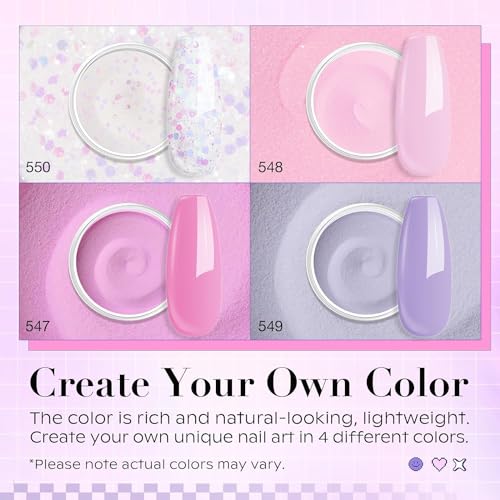 Specification: Dip Powder Nail Kit Starter, Pastel Lavender Pink Glitter, 4 Colors Spring Summer Dipping Powder Set, Y2K Easter Style French Nail Art Base Top Activator Liquid Manicure DIY Salon 12 PCS