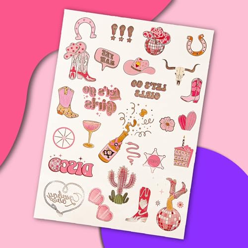 Best Last Disco Bachelorette Party Decorations: This disco cowgirl decorations tattoos can make you stand out in the crowd, then you can enjoy your last disco bachelorette party. our temporary tattoos for women is ideal disco cowgirl party decorations, disco cowgirl birthday party decorations and bridal shower decorations.