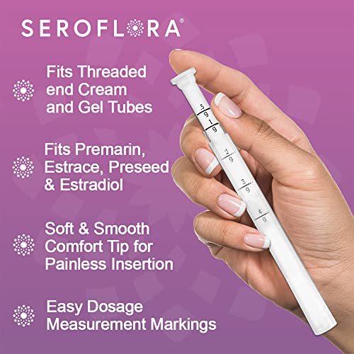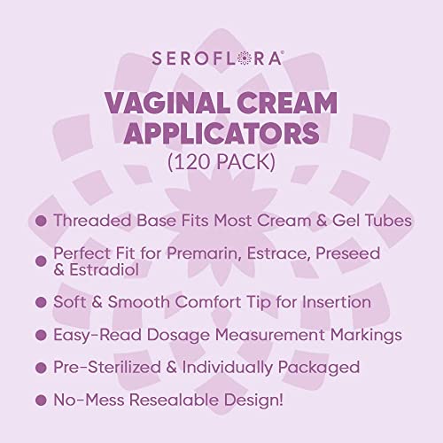 Specification: Disposable Vaginal Cream Applicators – Fits Premarin, Estrace, Preseed and Most OTC Gels, Lubricants, and Creams – Threaded End, Comfort Tip, and Dosage Markings (120 pack)