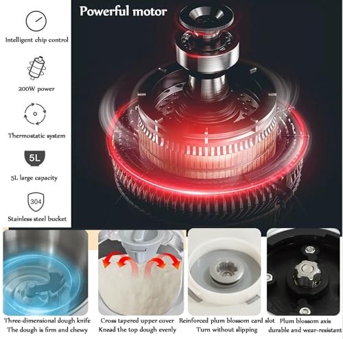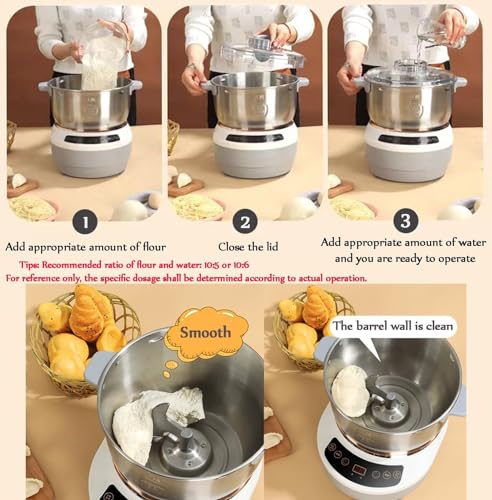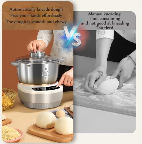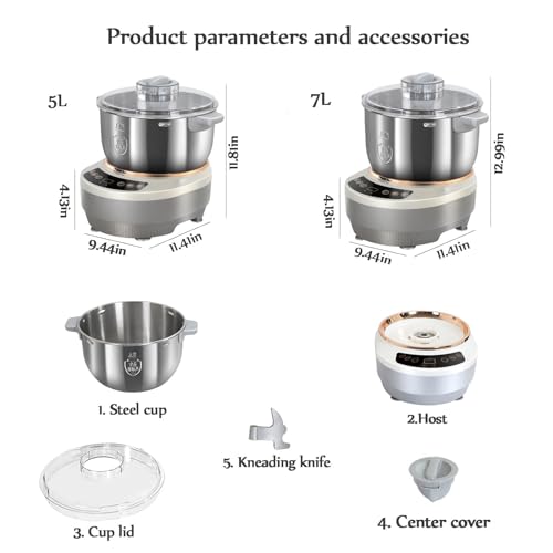 Large capacity and powerful operation: 5L /7Lcapacity for large families. Mimics manual kneading operations and satisfies your baking needs for bread, biscuits, pizza, buns or dumplings in one go.