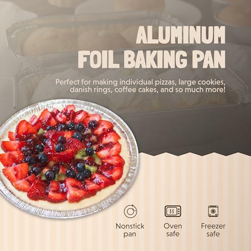 𝐃𝐔𝐑𝐀𝐁𝐋𝐄 𝐀𝐋𝐔𝐌𝐈𝐍𝐔𝐌: Made in the USA and crafted from 30 heavier gauge aluminum, these Individual Pizza Pans are durable and built to withstand baking temperatures, ensuring a safe and enjoyable foil baking pan experience. These disposable pans are designed to make your desserts stand out.