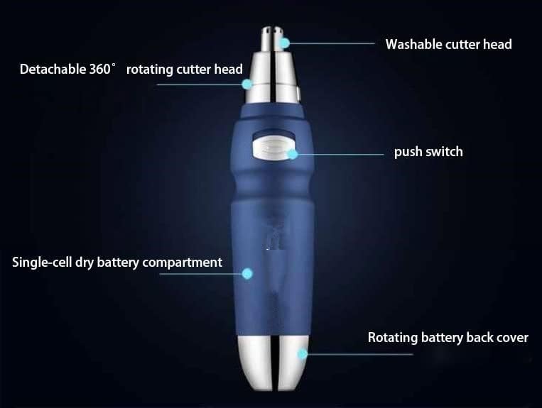 Specification: Ear and Nose Hair Trimmer Clipper for Men and Women – Waterproof Facial Hair Trimmer, Battery-Operated Hair Remover with Detachable 360° Rotating Cutter Head for Easy Cleansing Razor(Onecolor