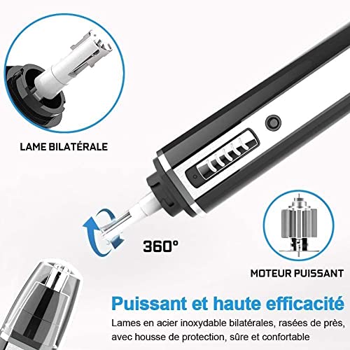 This nose hair trimmer features a dual-edge spinning blades system with protective cover, inner 360° rotating design, which precisely removes the hairs without painful and unpleasant pulling.