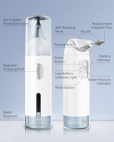 Specification: Ear Wax Removal – Upgraded Electric Ear Cleaner, Ear Cleaning Kit With 4 Water Pressure Modes, Water-Powered Ear Irrigation Flushing System w/ 8 Tips, 55dB Ultra-Quite, IP65 For Bathroom Use
