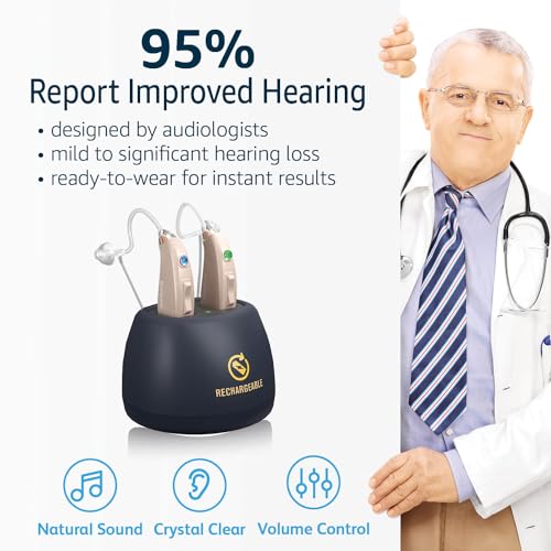 Specification: EarCentric EasyCharge Rechargeable Hearing Aids (Pair) for Seniors, Behind-The-Ear BTE Ear Aid PSAP digital Personal sound amplification products devices with Noise Cancellation (Beige)