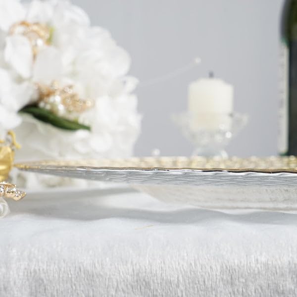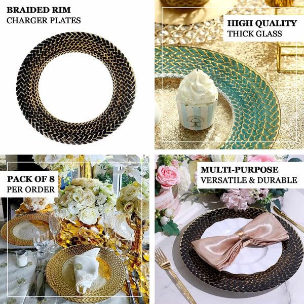 Efavormart 8 Pack | 13″ Luxurious Silver/Gold Braided Rim Glass Charger Plates | Clear, Round