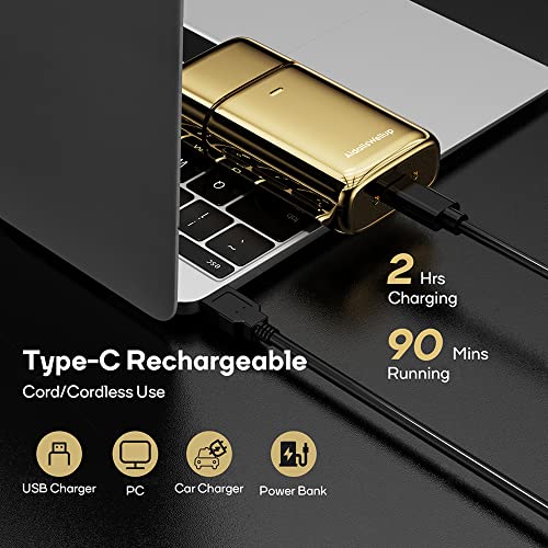 🤠 Retro Appearance: Make a statement with our elegantly crafted shaver. Its compact, brass-colored design with vintage embossing not only offers a sophisticated look but also serves as a testament to quality and style, making it the ideal travel shaver and a standout mens head shaver.