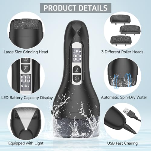 Specification: Electric Callus Remover for Feet,Rechargeable Electronic Foot File Pedicure Tools,Professional Waterproof Foot Scrubber File,Portable Pedi Feet Care for Cracked Heels &Dead Skin with LCD Display