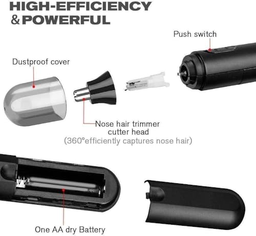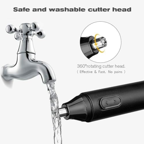 This nose hair trimmer features a dual-edge spinning blades system with protective cover, inner 360° rotating design, which precisely removes the hairs without painful and unpleasant pulling.