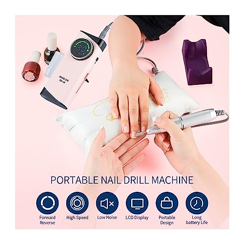 Electric Nail Drill, 30000RPM Rechargeable Nail Drill Manicure Machine,Professional Nail Gel Polishing Remover Cordless Drill Set Nail Art Low Voice Easy to Use, for Acrylic and Removing Gel Polish