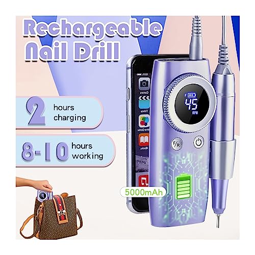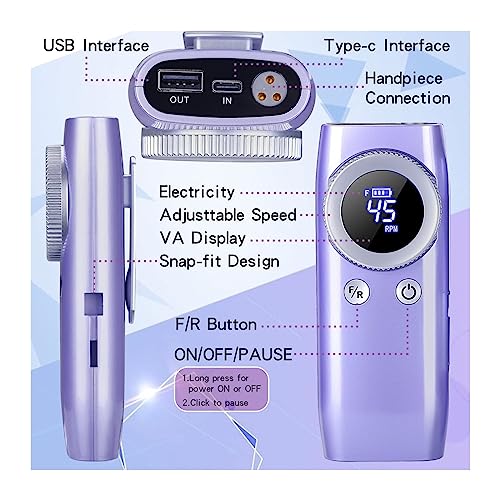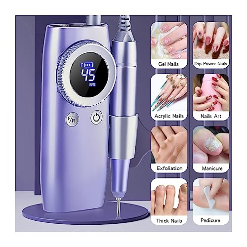 Specification: Electric Nail Drill, 45000RPM Nail Drill Machine For Manicure With LCD Display, Sander Nail, Rechargeable Nail Lathe, Electric Cordless Drill For Gel Nails Easy to Use, for Acrylic and Removing Gel Po