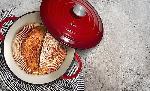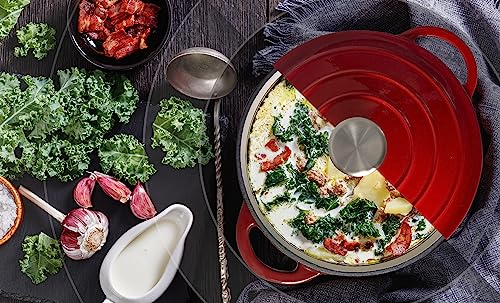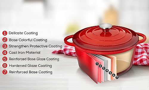 Enameled Cast Iron Dutch Oven – 5qt Dutch Oven Pot with Lid and Steel Knob 500 degrees – Cookware for Gas, Electric & Ceramic Stoves – Red Enamel – Cooking & Baking