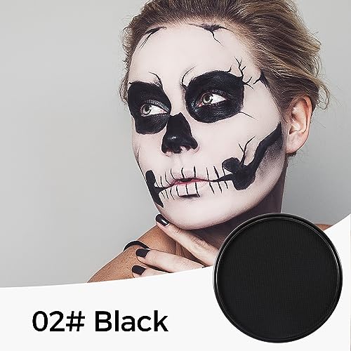 Erinde Black Face Body Paint, Professional Water Based Face Painting Kit for Kids & Adults, Non Toxic Water Activated Single Cake Face & Body Paint Makeup Supplies for Halloween Cosplay SFX, 30g