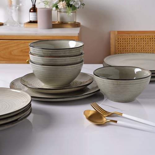 Specification: famiware Plates and Bowls Sets for 4, 12 Pieces Stoneware Dinnerware Sets, Dishes Set, Reactive Glaze Dishware Sets, Dishwasher & Microwave Safe, Tempus Series – Castle Wall