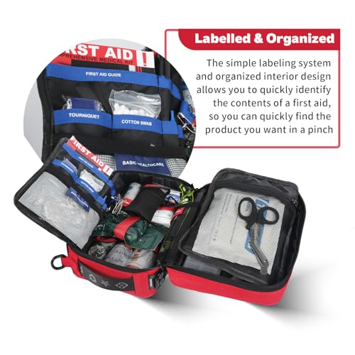 First Aid Kit with Compartments: The entire first aid kit is equipped with independent compartments so that you can find the first aid items you need according to the compartments in an emergency. Helps you clean wounds as quickly as possible and face emergencies easily.