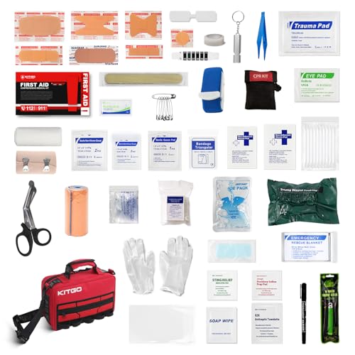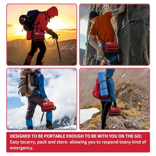 Portable First Aid Kit: Kitgo’s practical first aid kit measures only 7.5*10.5*4.5 inches and weighs only 2.8 pounds. It is equipped with a compatible shoulder strap and can be hung on a backpack or waist in multiple wearing ways. Very suitable for carrying on the go.