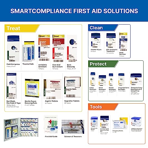 Specification: First Aid Only 50-Person SmartCompliance First Aid Kit for Businesses, ANSI A+ Compliant Metal First Aid Cabinet with Medications, 241 Pieces
