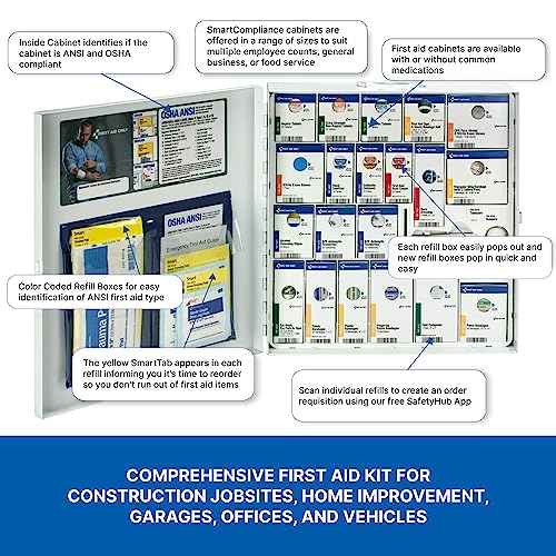 First Aid Only 50-Person SmartCompliance First Aid Kit for Businesses, ANSI A+ Compliant Metal First Aid Cabinet with Medications, 241 Pieces
