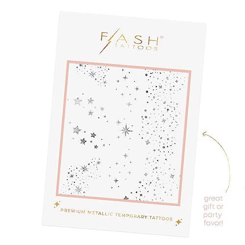 Flash Tattoos Fairy Dust Metallic Temporary tattoos-2 sheet mini pack | Includes over 23 premium silver foil giltter tattoos | face glitter, face gems, festival, face freckles, celestial sparkle, moon tattoo