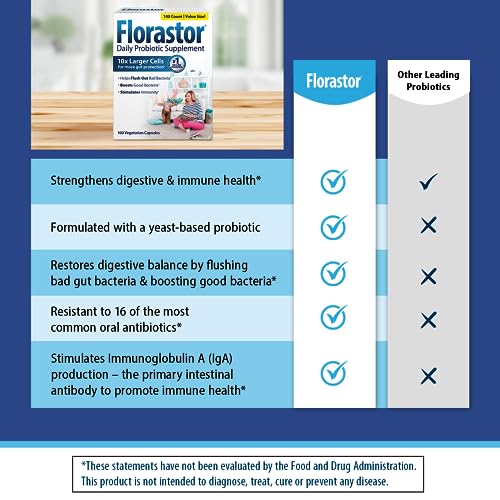 Specification: Florastor Probiotics for Digestive & Immune Health, 100 Capsules, Probiotics for Women & Men, Dual Action Helps Flush Out Bad Bacteria & Boosts The Good with Our Unique Strain Saccharomyces Boulardii