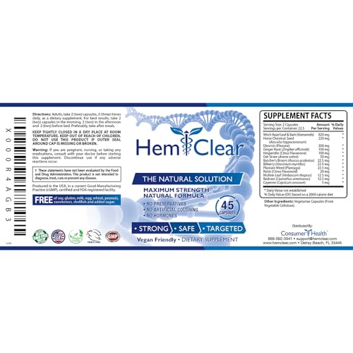 HemClear effectively combines the most powerful and extensively researched 100% natural, vegan and natural ingredients, to give you a proven solution for hemorrhoid relief and support to ensure optimal vascular health.