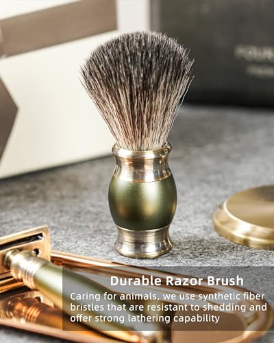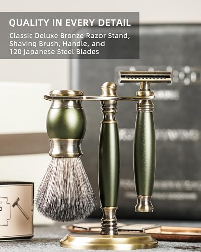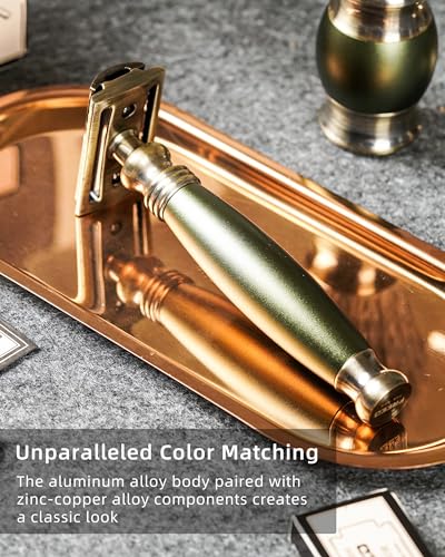 Elegantly Packaged – Ideal for Gifting: The antique bronze-themed appearance, complemented by various handle colors, combined with the sophisticated aluminum alloy material, makes this shaving kit not only an ideal grooming tool but also a premier choice for gifting. It serves as an elegant decoration, enhancing any living space.