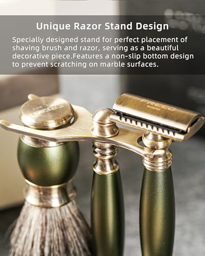 Exquisite Double-Edge Razor Set: This rich set includes a dedicated razor stand, ensuring your shaving tools remain organized and tidy. Crafted with high-quality aluminum alloy, it showcases exceptional craftsmanship.