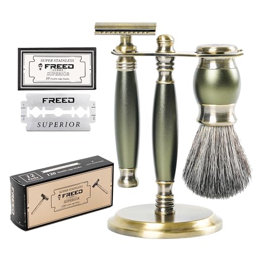 FREED Luxury Shaving Set for Men – Double Edge Safety Razor with alloy handle include 120 count Japanese 6cr13 Stainless Steel blade, It’s the best gift for men, fathers,or birthdays