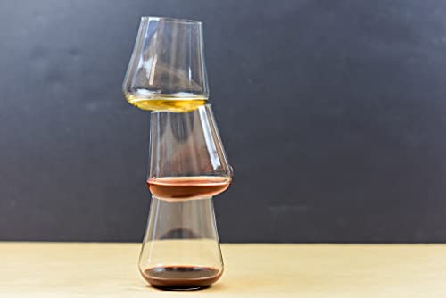 The amazing “One for All” stemless glass is perfectly shaped for all types of wine: white, red, sparkling and dessert