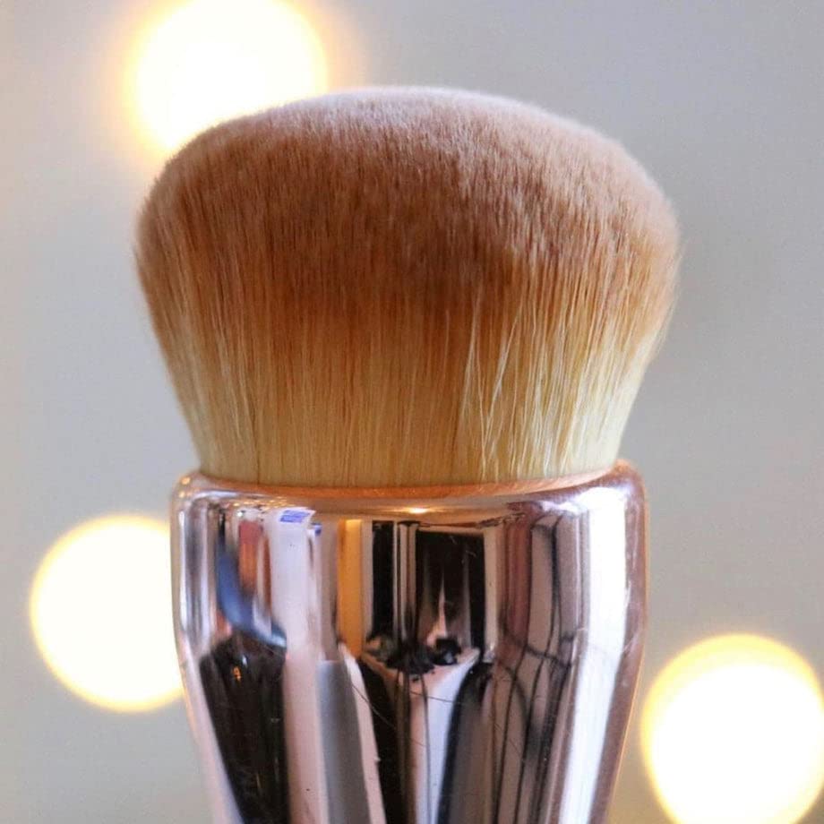A little bit goes a long way with this brush, you just need 2 drops of foundation for a flawless finish. The little the better. You can also built up the finish as you like.