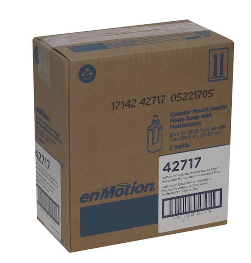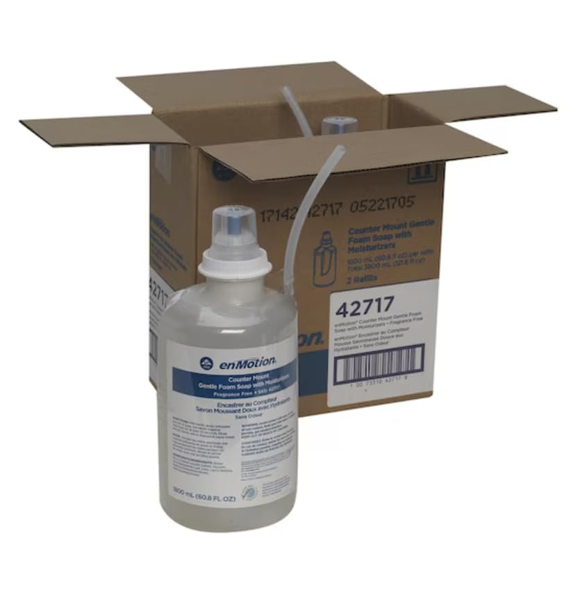 Counter Mount Moisturizing Foam Soap has a rich foaming lather to leave skin feeling fresh and is gentle enough for daily use. Closed hygienic refill bottles install in seconds. Designed for use with enMotion Automated Touchless Counter Mount Soap Dispenser. This moisturizing soap is PH Balanced and Dermatologist Tested for a premium experience.