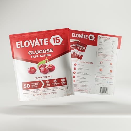 Specification: Glucose Powder Slimpaks – Alternative to Traditional Tablets – FSA/HSA Eligible -Fast Acting Dextrose with Black Cherry Taste – (Pack of 50)