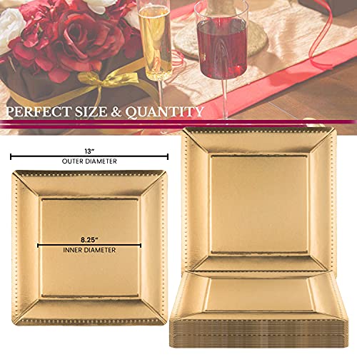 Gold Charger Plates Disposable, Disposable Plates For Party, 13″ Disposable Plates, Gold Chargers for Wedding, Disposable Paper Plates (Square, Gold) 120 Pcs