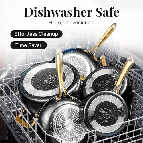 Gotham Steel 15 Pc Ceramic Pots and Pans Set Non Stick, Kitchen Cookware Sets, Pot and Pan Set, Ceramic Cookware Set, Non Toxic Cookware Set, Non Stick Pots and Pan Set, Dishwasher Safe – Black Gold
