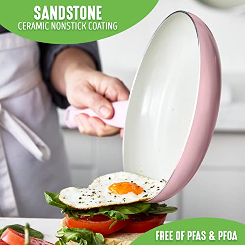 Diamond-infused Sandstone ceramic nonstick coating is derived from sand and free of PFAS, PFOA, lead, and cadmium for effortless cooking and quick cleanup