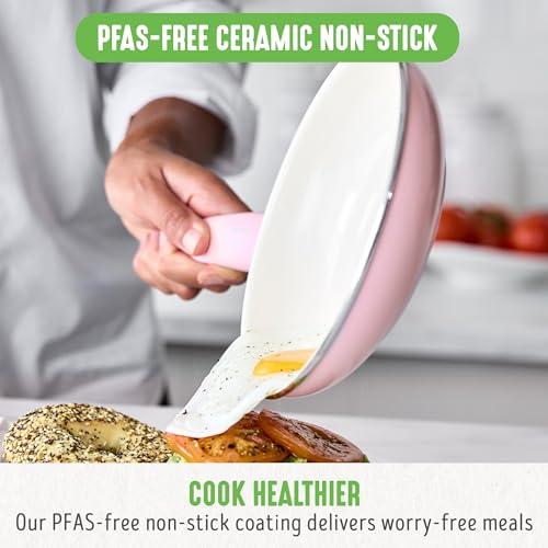 HEALTHY CERAMIC NONSTICK: Our healthy and easy-to-clean ceramic nonstick coating is derived from sand and delivers effortless release with quick cleanup