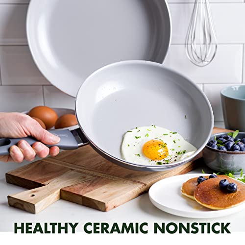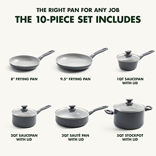 GreenPan Dover Healthy Ceramic Nonstick, 10 Piece Cookware Pots and Pans Set, PFAS-Free, Dishwasher Safe, Comfort Grip Handle, Grey