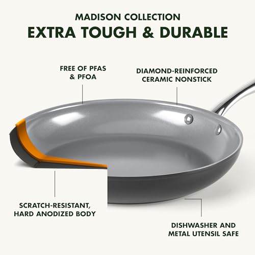 REINFORCED WITH DIAMONDS: Metal utensil safe, GreenPan’s diamond-infused ceramic nonstick coating offers remarkable durability, balanced heating, and effortless cleanup