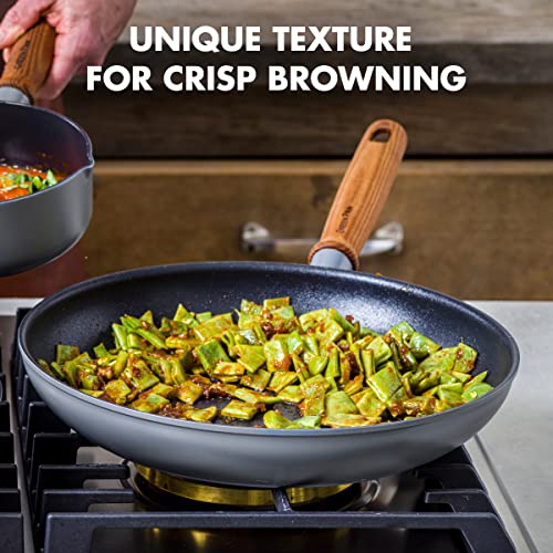 GreenPan Mayflower Pro Hard Anodized Healthy Ceramic Nonstick, 10″ and 12″ Frying Pan Skillet Set, Vintage Wood Handle, PFAS-Free, Induction, Charcoal Gray