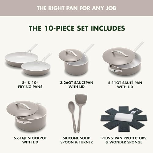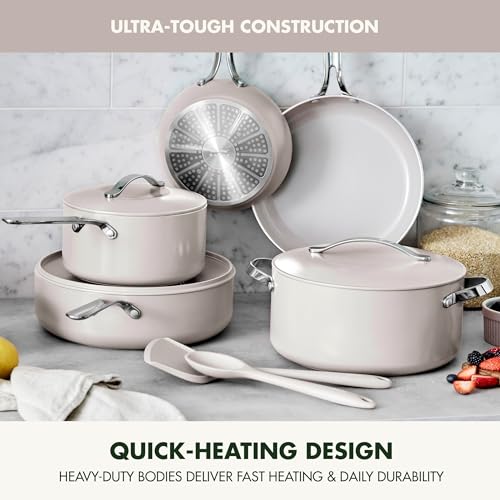 Specification: GreenPan Nova 10 Piece Cookware Pots and Pans Set, Healthy Ceramic Nonstick, PFAS-Free, Induction Suitable, Dishwasher and Oven Safe, Clay