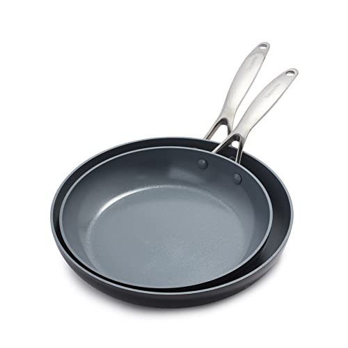 GreenPan Valencia Pro Hard Anodized Healthy Ceramic Nonstick 10″ and 12″ Frying Pan Skillet Set, PFAS-Free, Induction, Dishwasher Safe, Oven Safe, Gray