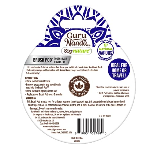 Specification: GuruNanda Brush Pods (1 Pack) – Toothbrush Head Cover for Manual & Electric Brushes – Clip-On Plastic Toothbrush Protector with Natural Essential Oil Vapors – Colors Varies, 13-33-001-08388-24