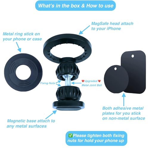 ✅ [The metal ring is for you stick on Non-MagSafe cases, the metal plates are for you stick on smooth Non-Metal surface]
