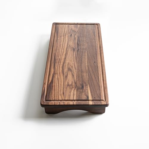 Half-Wood Stove Cover. Size is: 21.25” x 11” x 3.38” (54cm x 28cm x 8.6cm). Introducing our exquisite solid walnut wood half-stovetop cover, meticulously crafted with precision in our Texas workshop. Measuring 21.25” x 11” x 3.38”, this stunning piece offers both functionality and beauty to your kitchen space. Made with the finest walnut wood, it boasts a natural elegance that enhances any culinary environment. Its thoughtful design includes a juice groove to safeguard against spills while ensuring a clean cooking surface. Finished with a food-safe finish and free from paints or stains (0-VOC), this half-stovetop cover epitomizes quality, sustainability, and craftsmanship, making it a must-have addition to your home.