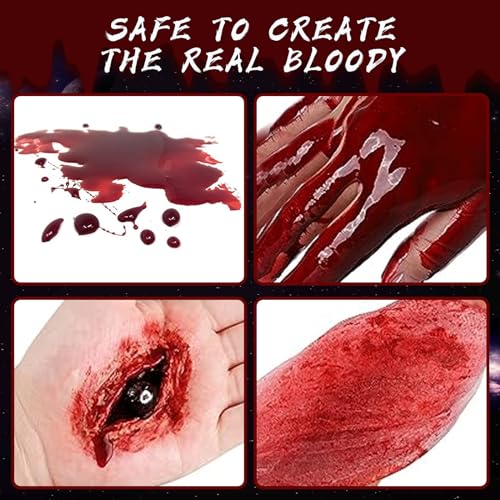 HAVE FUN: Can be used anywhere for a realistic bloody effect; Spray to body for face, arms and legs or the cloth;makeup, zombie costumes, props, and sets,have fun with your friend and family