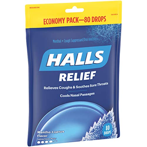 HALLS Relief Mentho-Lyptus Cough Drops are ready for whatever life throws, or coughs, your way. With 5.4 mg of menthol per drop, these eucalyptus cough drops relieve coughs, soothe sore throats and cool nasal passages to quickly relieve your worst symptoms. Whether you’re using these cough suppressant drops for sore throat relief, cough relief or as an oral anesthetic, dissolve one drop in your mouth slowly, and repeat every two hours as needed. HALLS Relief cough drops are formulated for adults and children five years and older. These sore throat drops are individually wrapped and come in a resealable bag for portability and freshness, making them perfect for a healthy gift or care package. Each economy package holds 12 resealable bags of 80 drops each (960 total drops).