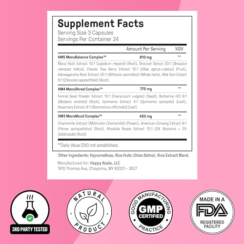 Specification: Happy Mammoth Hormone Harmony Natural Hormonal Support for Women, Relief for Menopause, Perimenopause, Hormonal Imbalances, PCOS, Hot Flashes, Mood Swings, Brain Fog, Fatigue. 72 Capsules.